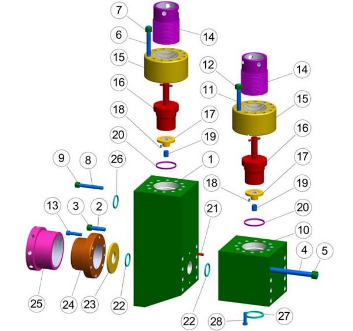 | 80704032 | FLUID END ASSEMBLY COMPLETE INCLUDES ITEMS (1-27) ENOUGH FOR 1 PUMP | 1 | |